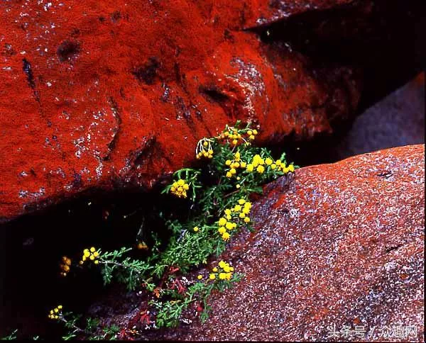 石頭之所以為紅色,是因為在石頭上的一種微生物,在高山特有的生態(tài)環(huán)境內(nèi)得以繁衍,構(gòu)成生命與歷史相融共存的奇特景觀,石頭上的紅色物質(zhì)是一種有生命的原始藻類;
