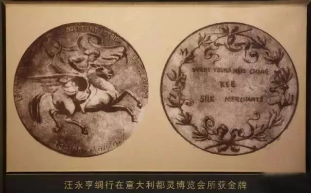1910年,在意大利都靈舉辦的世界博覽會上,盛澤汪永亨綢行和張益源綢行送展的綢樣雙雙榮獲最優(yōu)等獎,這是盛澤絲綢首次獲得國際大獎;1915年,汪永亨等四家綢行送展的綢緞又在美國金山舉辦的巴拿馬太平洋博覽會上分別榮獲名譽獎、金牌獎和銀牌獎;盛澤絲綢由此而享譽世界。作為盛澤絲綢行業(yè)的代表人物,徽州黟縣徽商汪永亨綢行的老板汪鞠如功不可沒。