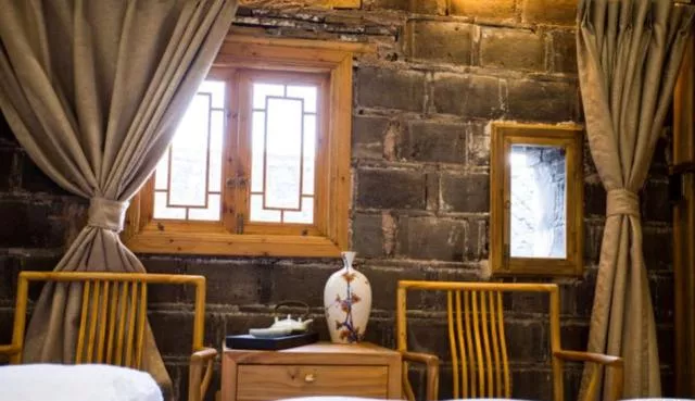 在大宅一樓,房間不是很大,但房間整齊干凈,臥室內(nèi)是老房子設(shè)計的風(fēng)味配有仿古榆木家具(據(jù)說是個三百年的老宅哦!,而且祖上從這個宅子里了一位大官出款修的此宅,之后的在這個宅子出現(xiàn)了很多文人!
