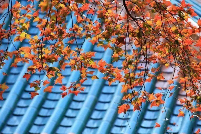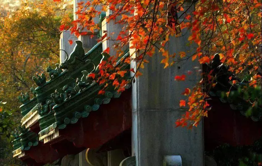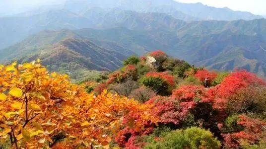 太陽的映照下,楓葉流丹,層林盡染,棕紅黃橙綠,五彩斑斕,燦若朝霞,給蒼郁的圭峰山增添了一份瑰麗。