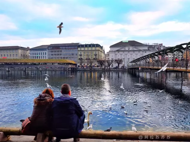 剛到琉森就被眼前畫(huà)面驚呆,天氣特別好,藍(lán)藍(lán)如寶石的水面,上面很多天鵝鴿子海鳥(niǎo),很后悔沒(méi)帶面包,不然你就是鳥(niǎo)群中最閃耀的人。