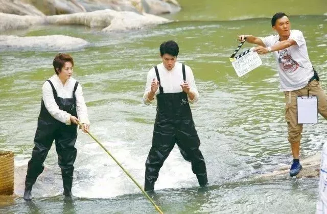 圖為劇組在青嵐怪臼谷拍攝“抓魚神功”的畫面。