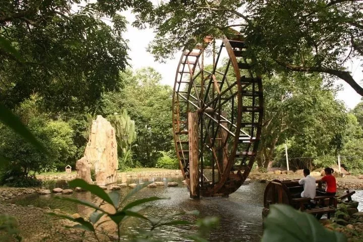 【綠島山莊】具有農(nóng)家鄉(xiāng)土風(fēng)情的“農(nóng)俗文化區(qū)”昔日農(nóng)家、窯雞制作坊、吉祥樹、農(nóng)家古井區(qū)、農(nóng)樂園、綠島驛站,在景區(qū)中,小橋流水、茅屋亭臺和各種富有農(nóng)家特色的娛樂設(shè)施都掩映在成蔭的綠樹下??稍跇湎缕奋奶欤傻揭安藞@采摘,也可觀賞和操作潮汕傳統(tǒng)農(nóng)具,卷起褲管,光著腳混水摸魚、沙中尋寶、玩車嬉鳥,趣味無窮