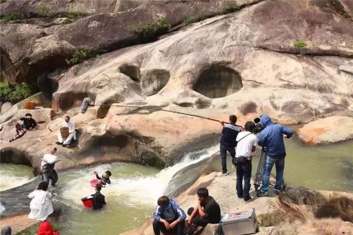 在今年五一小長假期間,開心麻花劇組則來到潮州綠島·青嵐怪臼谷進行取景,景區(qū)以其天然奇景被選中為影片故事和精彩情節(jié)的重點拍攝場景。整個劇組人員多達180多人,在景區(qū)中拍攝了三天,劇組人員紛紛為青嵐神奇、獨特、豐富的自然景觀點贊。國慶期間,全國各地不少游客慕名而來,大家紛紛合影留念,停下腳步玩水嬉戲,做了一回“電影主角”。