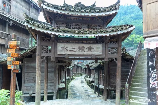 大塘苗寨的水上糧倉(cāng)已經(jīng)有600余年的歷史,三橫三縱幾十個(gè)分倉(cāng)密布于深數(shù)尺的水塘之上。緊挨著公路的牌坊上刻著水上糧倉(cāng)四個(gè)隸書大字,一瞬間把我?guī)Щ財(cái)?shù)百年前,一股歷史滄桑感悠然而生。