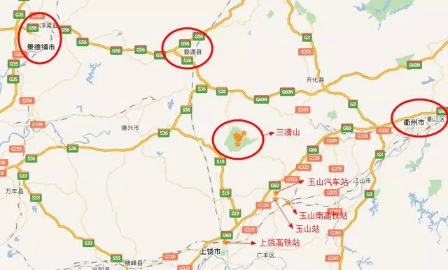 1,三清山周邊有玉山站(火車站),玉山汽車站和玉山南站(高鐵站),距離這三個站約有45公里左右,一個小時車程。