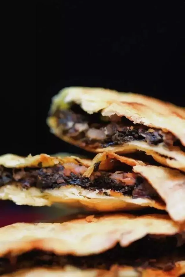 梅干菜、蘿卜絲、或是咸菜,多種口味可選。烤制成功后,松軟脆香的麥皮,咬上一口,香味直竄鼻腔,在嘴里炸出濃郁的肉汁。咸菜等的咸味兒蓋住了肉的油膩,食之松脆,極其爽口,讓人忍不住大快朵頤,回味無窮。