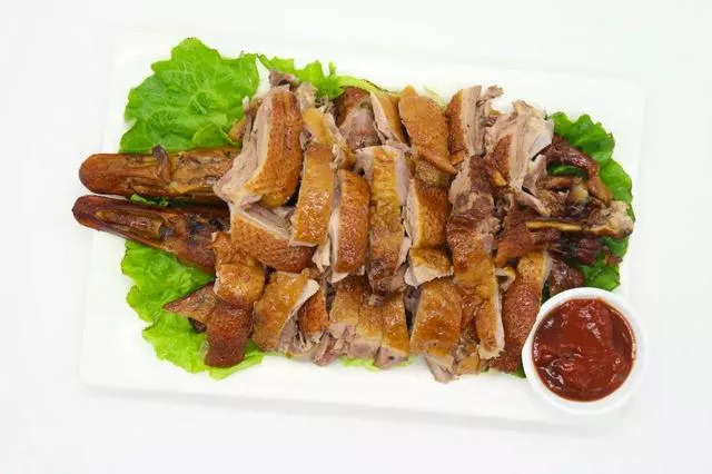 聞名四方的巽宅燒鵝制作工藝別出心裁。先將鵝宰殺洗凈,取出內(nèi)臟(可制成另一道美味佳肴,名為鵝雜),放入調(diào)制好的湯料中煮熟,撈其放入鍋中用大米等熏制而成,色澤金黃,香味清淡,肉味鮮美,嫩滑,油而不膩,老少皆宜。