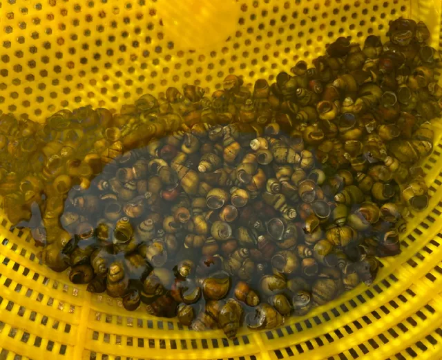 楠溪江清澈的水底下有著當?shù)靥赜械男÷萁z。一般地方都喜愛炒螺螄,但楠溪螺螄卻是煮湯的。在鍋內(nèi)放水,放入火腿丁、春筍片、泡椒、杏鮑菇、蒜片煮沸后轉(zhuǎn)小火熬出濃湯汁,然后投入炒熟的螺螄,酌量加鹽、酒,不停地翻炒1-2分鐘后,即可出鍋。湯濃菜鮮,泡椒的絲絲辣味浸入其中,去了腥,又增了味,除此之外,這道菜還有清涼、利肝臟的功效。
