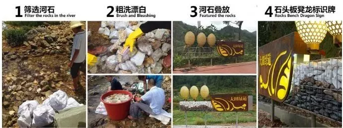 ▼綠道石頭板凳龍的制作過(guò)程