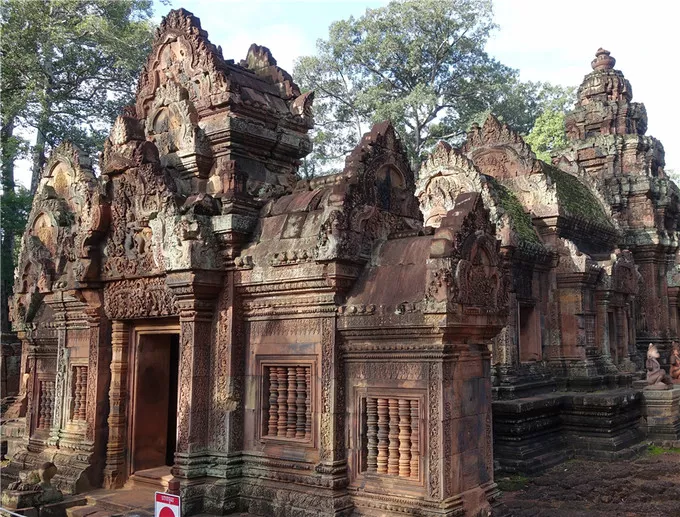 王宮是吳哥古跡中最重要的建筑群之一,它的建筑以小巧玲瓏、精致剔透、富麗堂皇而著名于世,有“吳哥古跡明珠”和“吳哥藝術(shù)之鉆”的美譽(yù)。女王宮以艷麗的色彩和精美的浮雕著稱于世,是吳哥古跡中風(fēng)格最獨(dú)特和最精致的建筑群之一。BanteaySrei的意思是“女人的城堡”,據(jù)猜測(cè)是由女性修建和雕刻的。這也許是因?yàn)檫@里的雕刻太過精美,不像出于男性之手。