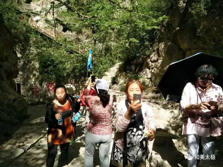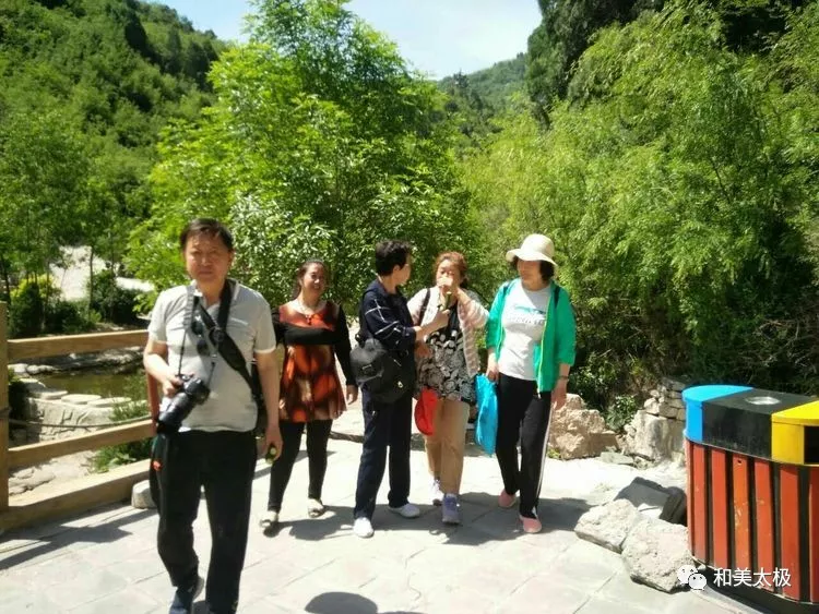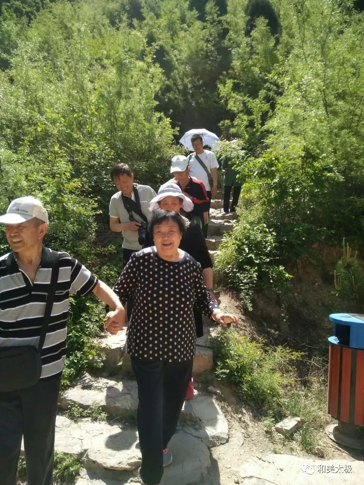 2017年5月13日臨汾市楊氏太極拳協(xié)會組織市內(nèi)部分會員到襄汾縣龍澍峪一日。五月的天是陽光明媚,是柔和清爽的季節(jié),是綠蔭樹枝茂盛,花兒綻放放的季節(jié)。我們臨汾市楊氏太極拳協(xié)會在羅海平會長的領(lǐng)導(dǎo)下,協(xié)會班領(lǐng)導(dǎo)按照2017年計劃的工作目標(biāo),協(xié)會班子分工明確、各負其責(zé),組織全市協(xié)會員開展了形式多樣豐富多彩的活動。這次旅游活動由楊氏太極拳協(xié)會精心組織,合理安排,為了大家的健康安全旅行,配備了醫(yī)護人員隨行。由協(xié)會宣傳部長許文龍親自帶隊,驅(qū)車前往襄汾龍澍峪一日游。在踏上前往征程的路上各站會員大顯伸手,一路高歌,講笑話、講成語,笑聲朗朗,好像把我們一群年過半百的會員們又帶回童年時光,不知不覺的很快就到達了景區(qū)。大家按照負責(zé)人井然有序的安排,進入景區(qū)踏上爬山景點崎嶇路,一路上行,慢步觀賞名勝古跡,游覽青山白云、麥田、花蝶戀花、野花野草,鳥語花香。不知道是誰把這里一切安排的這樣的條理,把她布置的這樣的美麗,好像是用畫筆畫下的,一幅幅絕美的圖畫。拳友們歡聲笑語,盡情游玩,觀景掠影,留下足跡、留下笑臉、留下美景、留下美麗……在爬山攀登365個臺階中,分不清誰大誰小,分不出太極拳活動站與站之間、會員與會員之間的距離,分不出似曾相識,似父母情、夫妻情、兄弟姐妹情、拳友情,你幫我扶,充分體現(xiàn)了我們的太極美、人更美的互敬互愛、互幫互助、和諧可親團結(jié)友愛的精神。此次組織的旅游活動,進一步增強了拳友的友誼,增強了団隊的團結(jié)意識,提高了協(xié)會團結(jié)的凝聚力。