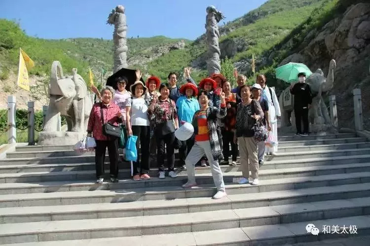 臨鋼一區(qū)太極活動站參加旅游景點的會員合影留念