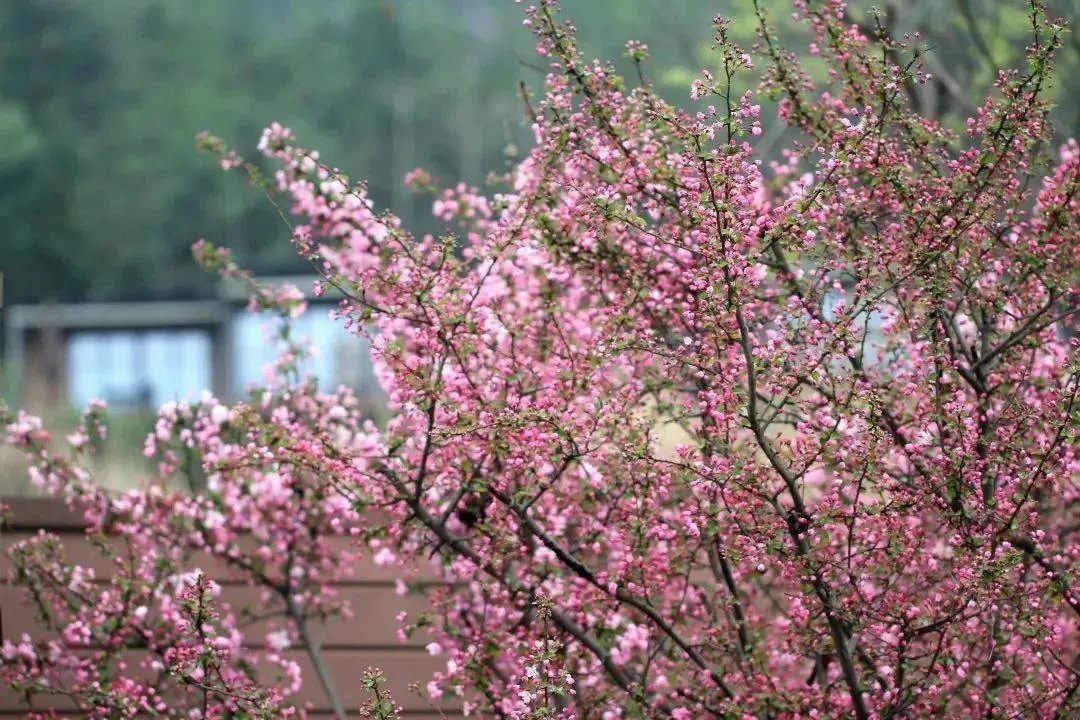后有正在盛開的貼梗海棠、李子花、