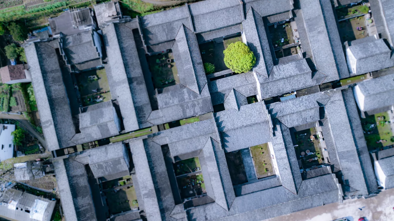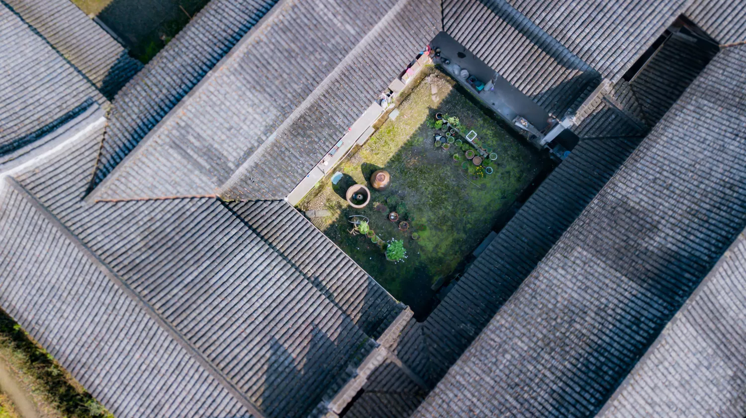 航拍視野下,斯宅猶如10個四合院連接而成;事實上,走遍千柱屋的每一個角落,可以“晴不見日,雨不濕鞋”,后人將千柱屋視作清代江南典型的聚族而居的大型宗族建筑。第一次進(jìn)入,很容易迷路,因為內(nèi)部院落幾近相同,且門廊樓閣相通。