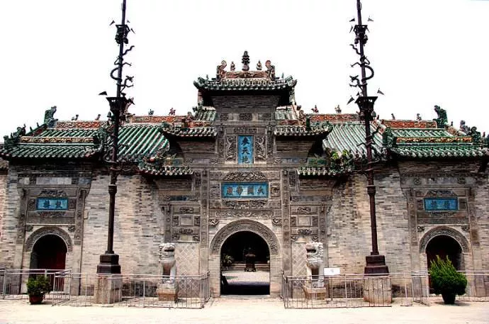 當(dāng)?shù)厝硕贾?,花戲樓最出名的是“三絕”。第一絕是磚雕,花戲樓的山門,是仿木結(jié)構(gòu)的牌坊式設(shè)計(jì),總共分三層,而且全部是由磚石整體雕刻出來,近距離觀察時(shí)人物毫發(fā)畢現(xiàn),在方寸之間展現(xiàn)了高超的磚雕技藝。然后第二絕是木雕,花戲樓的戲臺是整木雕刻而成,四周有數(shù)百個(gè)歷史人物,全部都雕刻得千姿百態(tài),栩栩如生。不過最厲害的還是第三絕,即小編上文提到的鐵旗桿。