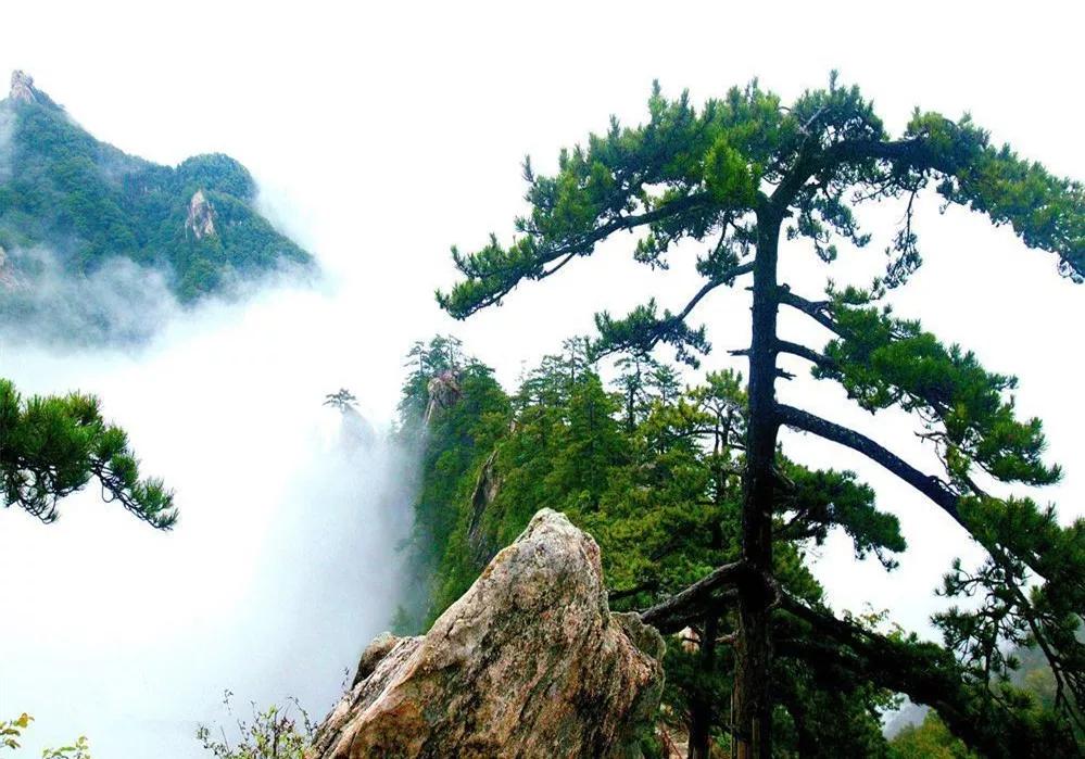 于青龍背上段的峰脊背上。根植于絕壁之上的巖石縫中 ,枝繁葉茂,樹高6米,樹齡在500年以上,可于黃山迎客松媲美,稱堯山迎客松
