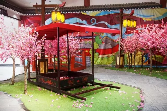 楚河漢街融入漢朝的婚禮文化元素,配合婚輦和連理林的造景布局,為游客悠悠訴說千年前的絕美傳說。