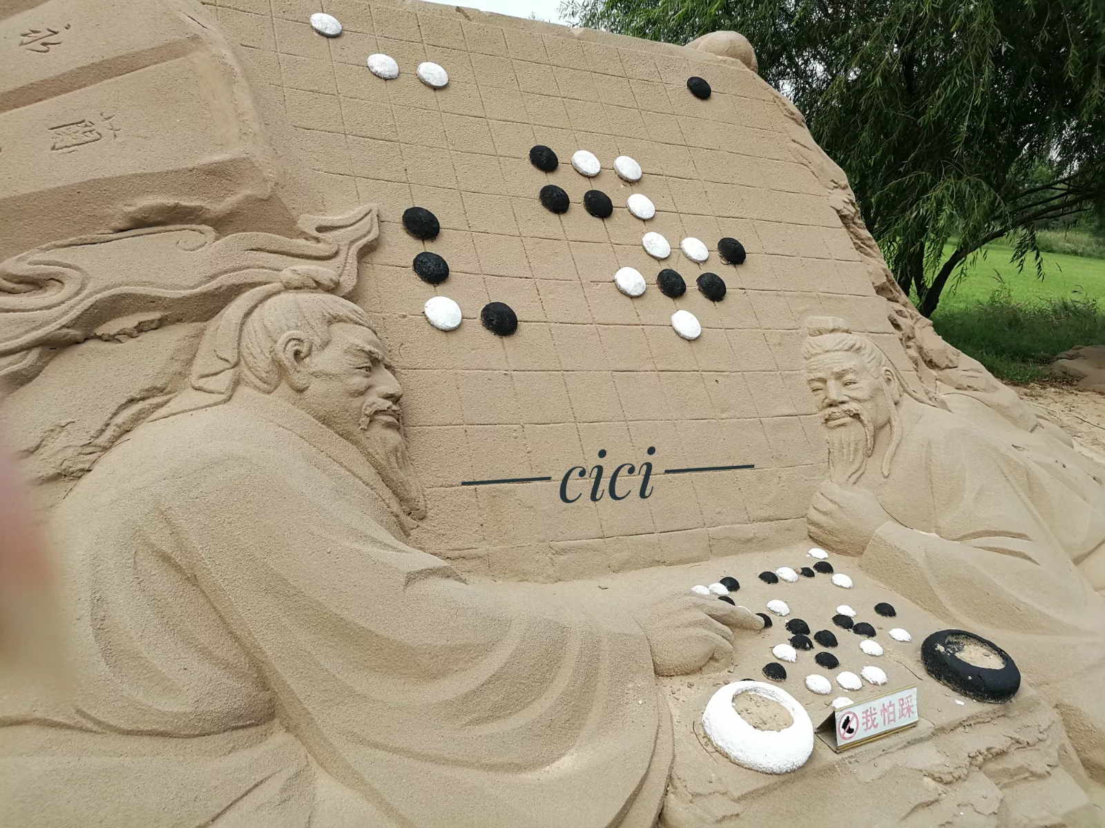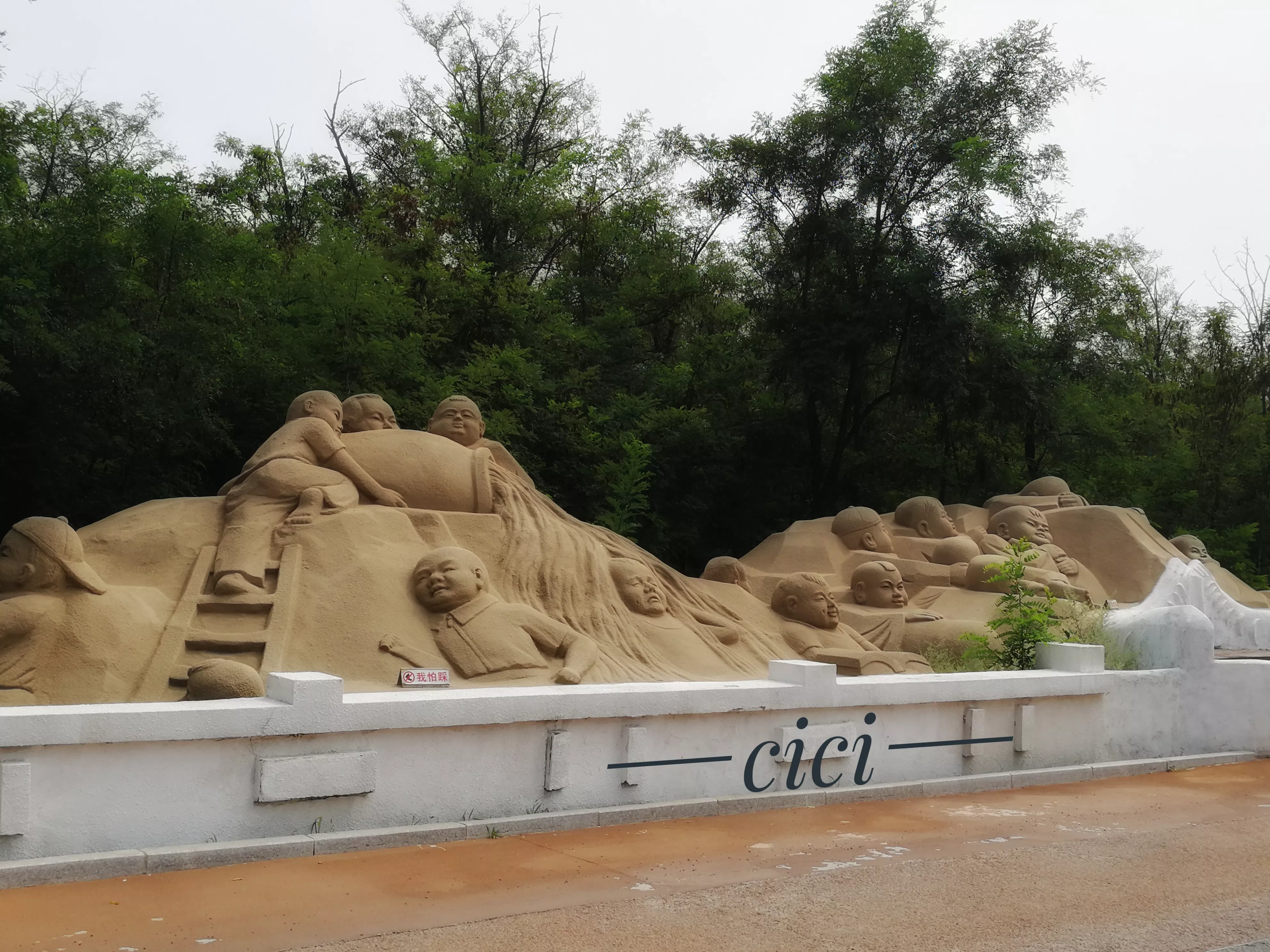 各種形態(tài)的沙雕其實很精美,有四大名著,古代故事里的人物,還有小朋友喜歡的動畫片里的人物,熊大熊二和光頭強。清明上河圖、三字經(jīng)金字塔等等。景區(qū)還利用了2000多年以來由于海潮季風作用形成的40多米高的岸邊沙丘,雕刻了37米高的沙雕大佛。所有的雕塑做工非常的細膩大氣,人物栩栩如生。因為大家都坐小火車,對于兩旁的沙雕反而很少有人駐足了,私以為有些本末倒置了。