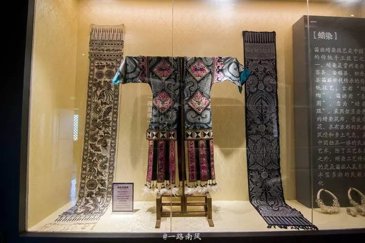 博物館以兵主戰(zhàn)神蚩尤的故事為主線,同時(shí)展出各種苗族服飾,全景展現(xiàn)苗族人的生活風(fēng)情。