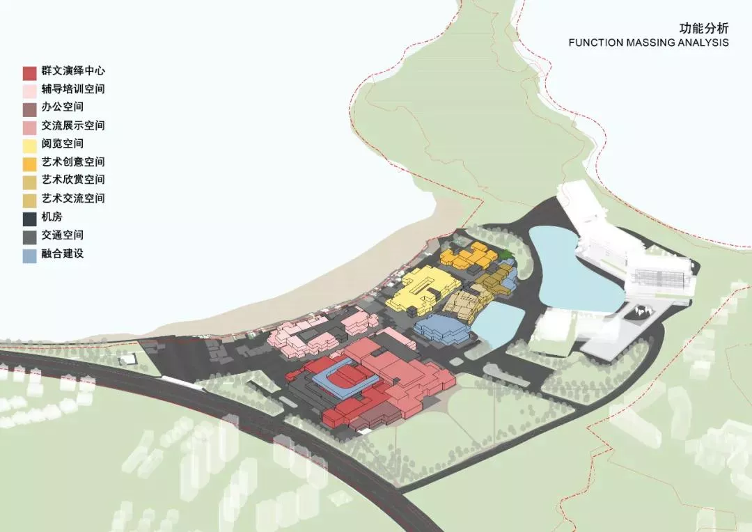 MAD設(shè)想了一個浮空的穹頂,聚攏有堆疊感和小尺度的空間。文化藝術(shù)中心多種大體量復雜功能需求被重新梳理,貼合原先村落的街道、地形和肌理進行布置,以分散的小尺度建筑、街區(qū)式的形式重現(xiàn)。在現(xiàn)有保護性拆除的基礎(chǔ)上,營造社區(qū)感。