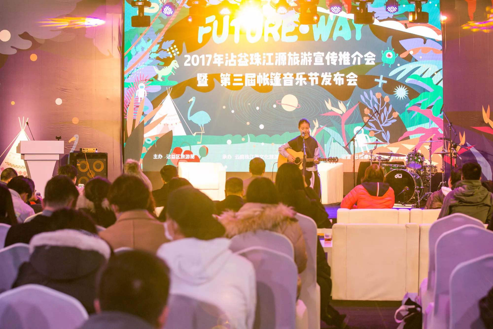 2017年12月17日,由沾益區(qū)旅游局主辦,云南珠江源文化旅游投資開(kāi)發(fā)有限公司承辦,云南摩登天空文化傳播有限公司運(yùn)營(yíng)的“2017年沾益珠江源旅游宣傳推介會(huì)暨第三屆帳篷音樂(lè)節(jié)發(fā)布會(huì)”,在珠江源景區(qū)迎賓樓隆重召開(kāi)。