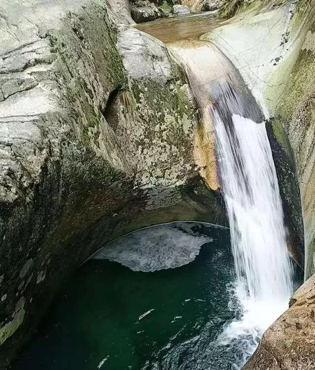 第二瀑為【青龍瀑】,又叫大竹山瀑布,它處在沖河歧峽中段,路邊刻有高約八十米【龍凼】?jī)蓚€(gè)大字瀑聲回蕩山谷,在青龍瀑下峽谷急彎處有一青龍池,碧波蕩漾,泉流湍急,溪谷清幽。
