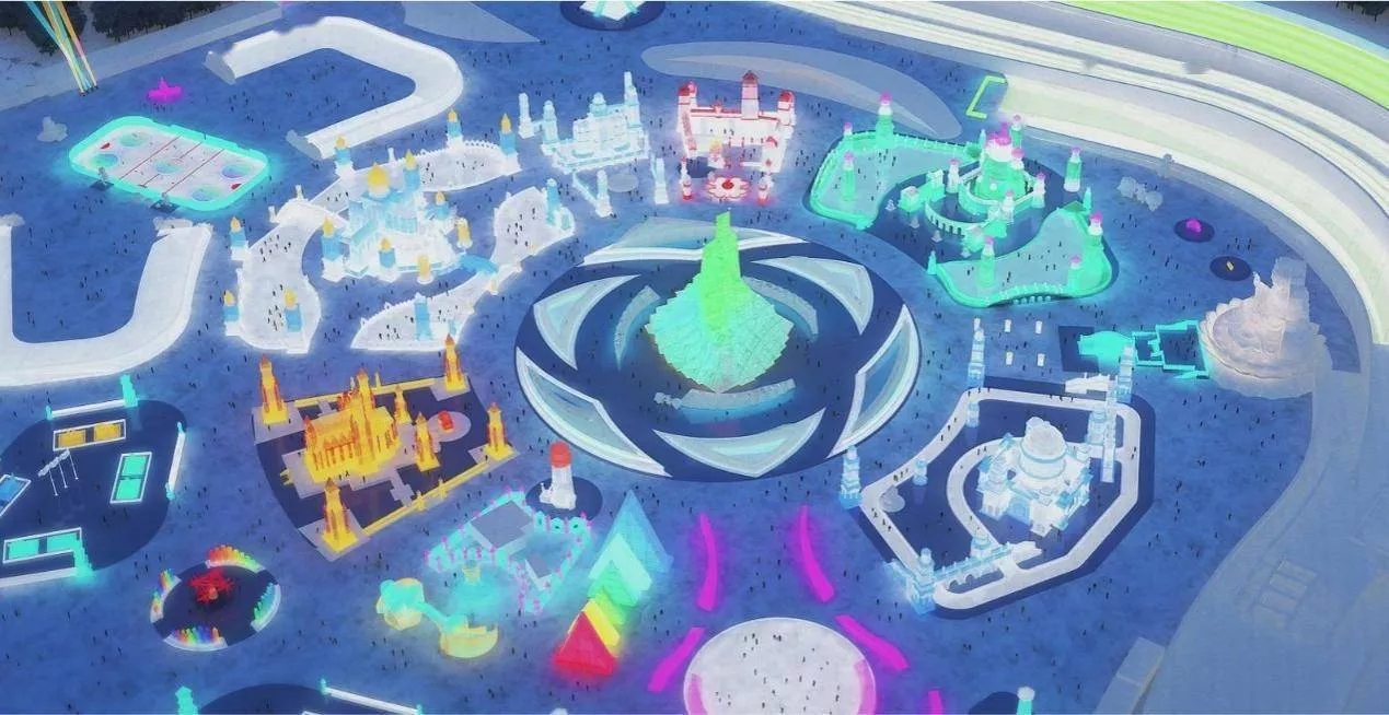 第二十三屆哈爾濱冰雪大世界園區(qū)局部效果圖。