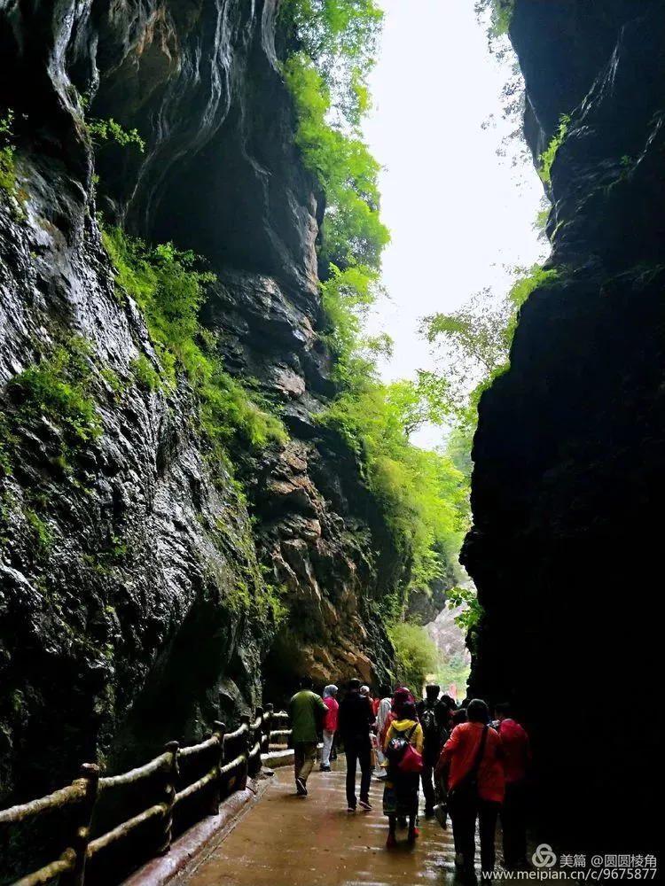 多處有高聳入云的險(xiǎn)峻峽谷,進(jìn)入“之”字形峽谷,峰回路轉(zhuǎn),曲徑通幽。深邃奇特的盤(pán)龍峽,兩邊石壁蜿蜒盤(pán)曲的走向相互吻合,有人由此推斷,很久很久以前,應(yīng)該是一座完整的石山,受地殼運(yùn)動(dòng)的影響,形成奇特的峽谷,令人驚嘆大自然的鬼斧神工。