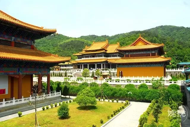 寺右側(cè)山腰建有南天壇,完全按北京天壇祈年殿建筑的大小建造,三層,屋檐層層收縮,作傘狀。殿高32米,底部直徑24.2米,巍然屹立于60米高的漢白玉圓臺上。附近還有隱士閣、月老閣等景點(diǎn)。