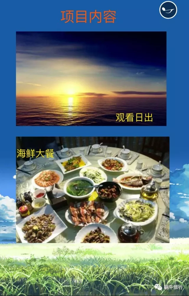 前往被譽為“北海醉美鐵山港”的漁村(10點到達基地),然后入住我們的漁村港,你可以露營,也可以住岸上賓館,海上賓館,海上簡單的木屋,都是那么悠閑美麗,10點30到12點自由海上觀光,和自己寶貝們自由垂釣,感受下海上無限好。12點20我們在美麗的鐵山港漁村開始享受我們的海鮮午餐,然后進入休閑的海上午休時間,吹著海風,夢游一切!14點到17點自由游泳 拉網(wǎng)捕魚 玩海上皮劃艇,捕來的魚貨可以給晚上加大餐哦,18點我們將享受到海上居民疍家人給我們做的最傳統(tǒng)的疍家晚餐。享受完我們的晚餐后,19點到20點就可以陪孩子們?nèi)セ仄脚_照魷魚了,20點到10點30開始燒烤你們一天抓的魚貨了 還有海上KTV!