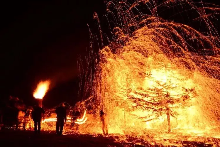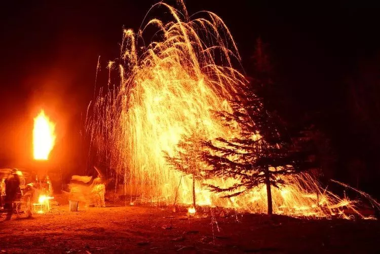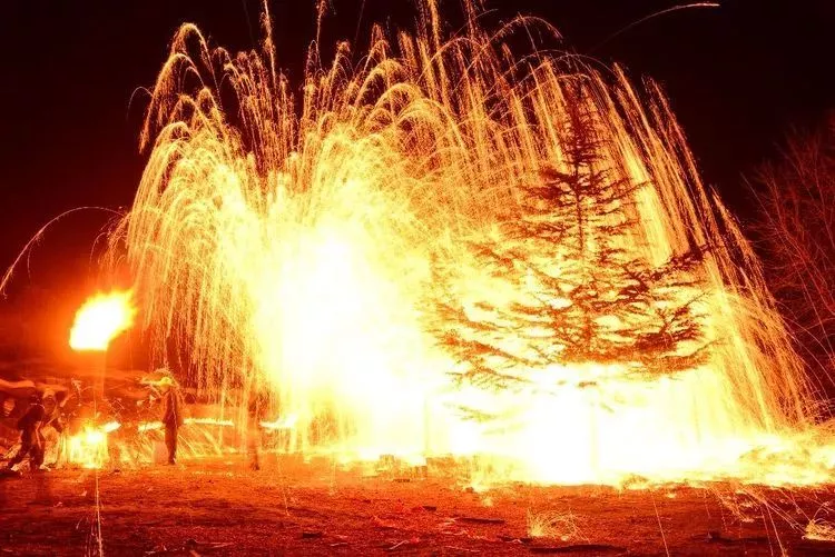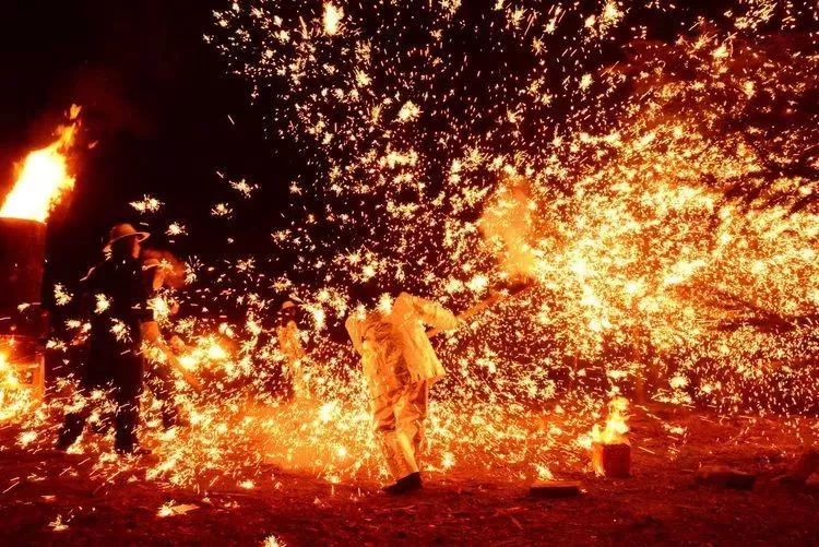 滾燙鐵汁飛上天,天女散花閃亮眼。