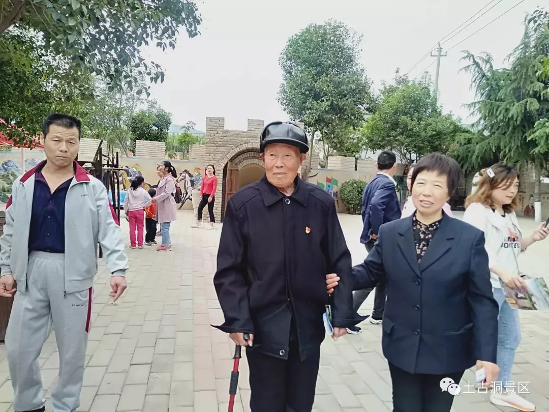 彭德懷將軍的戰(zhàn)友,曾經(jīng)參加過抗美援朝的89歲退伍軍人,在孩子們的陪同下,也來參觀土古洞藏兵洞