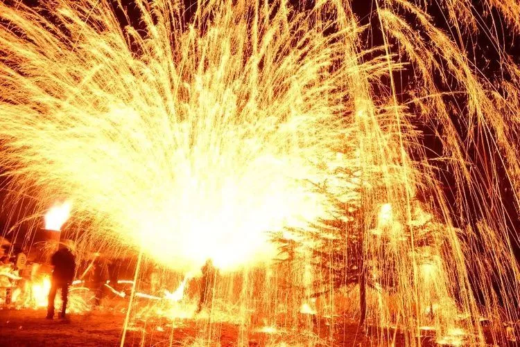 現(xiàn)場實拍新安土古洞元宵佳節(jié)打鐵花:美得震撼!