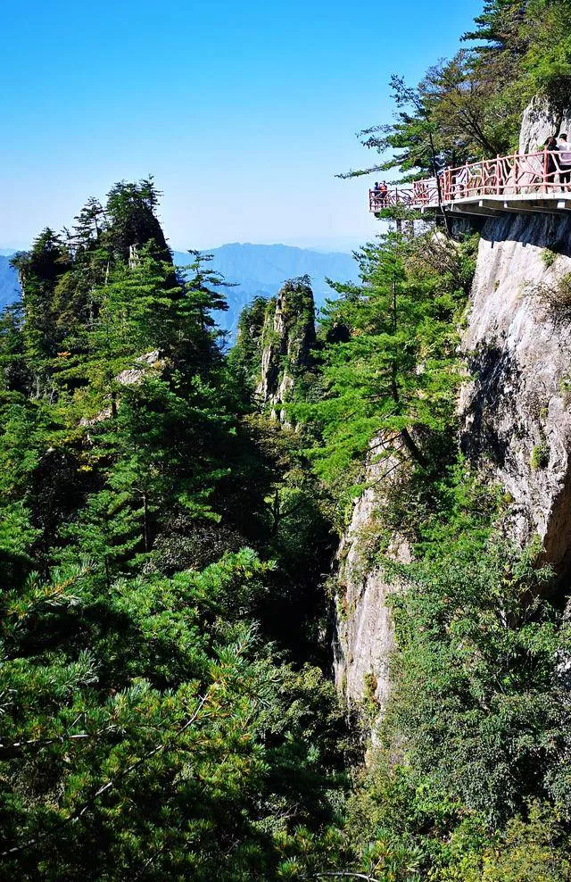 老君山主要看點(diǎn)是海拔一千八百米高山的環(huán)山十里畫(huà)屏(懸崖觀光棧道)和金頂峰林建筑群(峰林上的仙宮),十里畫(huà)屏俯瞰伏牛山脈山綿延不絕,景色大氣磅礴,于懸崖絕壁上穿行體驗(yàn)伏牛山大美山岳風(fēng)光,老君山高空棧道令人印象深刻。后爬一段強(qiáng)度大陡峭山脊,就到了老君山的最高峰金頂,金碧輝煌的“金頂?shù)烙^群”依山勢(shì)起伏而建,峰林仙宮蔚為壯觀,游玩需要五到八個(gè)小時(shí)。游玩安排可以有三:一,一早索道上山,中午一點(diǎn)左右索道下山;二中午索道上山,轉(zhuǎn)一大圈后看完日落六七點(diǎn)下山;三是在山上住一晚,傍晚看日落、星空,早上看日出。