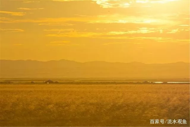 黑山頭濕地夕陽的余暉將草原染成了金黃,如夢如幻。