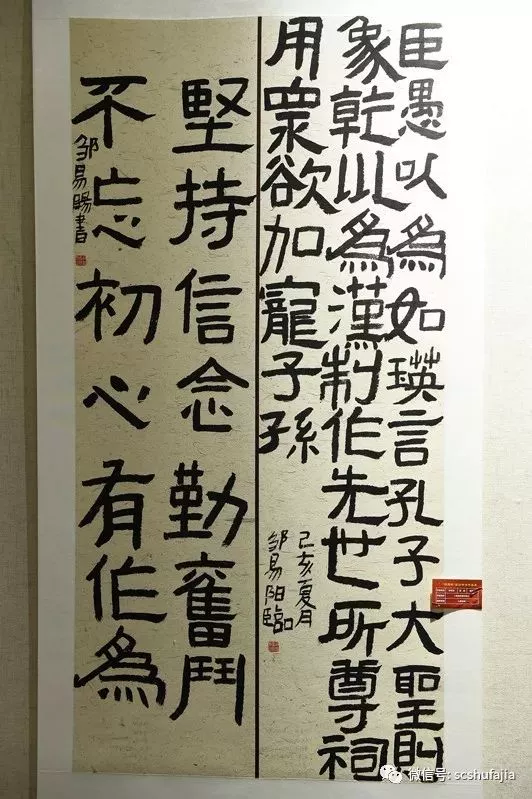 四川歐鵬建筑工程公司是一家充滿社會(huì)責(zé)任感的愛(ài)心企業(yè),長(zhǎng)期關(guān)心支持龍泉驛區(qū)的教育事業(yè),每年均對(duì)在藝體教育上做出突出成績(jī)的老師頒發(fā)歐鵬藝體教師獎(jiǎng)。本次臨創(chuàng)書法大賽也得到了該公司的大力支持贊助。公司黨支部書記何喜樂(lè)表示,本次展賽,書法選手們用真摯的情感,酣暢淋漓的筆墨去謳歌我們偉大的祖國(guó),書寫出了一幅幅充滿愛(ài)國(guó)情懷的藝術(shù)佳作。他表示,只要有需要,公司將一如既往地為藝術(shù)家們提供堅(jiān)定支持。