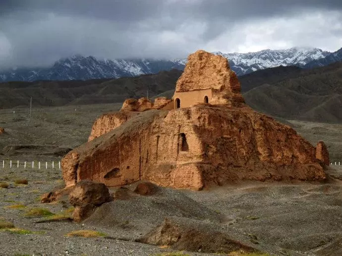 4、溫宿故墨古國(guó)遺址(古城遺址)位于溫宿鎮(zhèn)沿東至西的坎坡上,面積近6平方公里。據(jù)考證,故墨古國(guó)自秦漢至今以有兩千多年的歷史,在塔里木盆地邊緣的綠洲分布著“城郭諸國(guó)”的故墨古國(guó)為西域三十六國(guó)之一,是目前伊斯蘭文化最典型的象征,遺址有四至六層。其中保存較為完整的有王母殿,建于清朝前期,殿主為霍集斯家族成員。