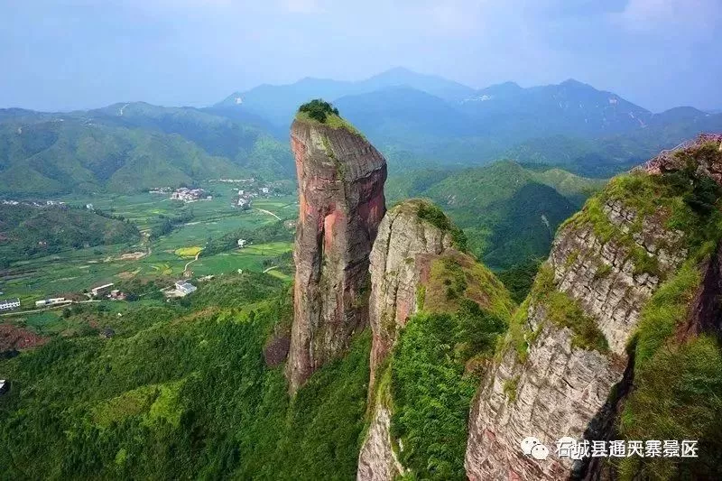 石城通天寨位于距離石城縣城7公里的大畬村,是典型的丹霞地貌,其中景點以各種形似人或物的山石為主。游覽通天寨途徑有二,一是沿南門拾階而上,上山路比較難走,但返程不累;二是從北門步梯而下,較為輕松,返程須另辟蹊徑。