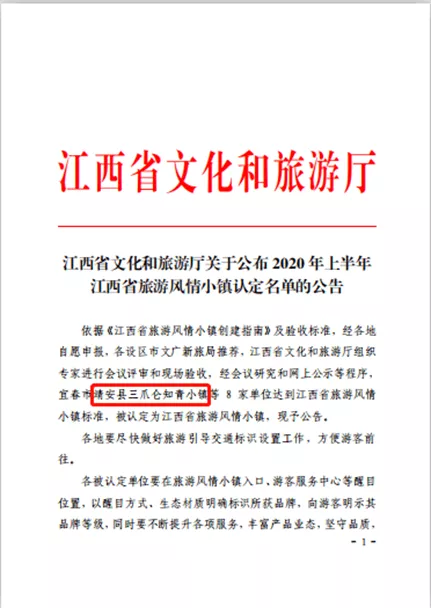 江西省旅游風情小鎮(zhèn)認定名單