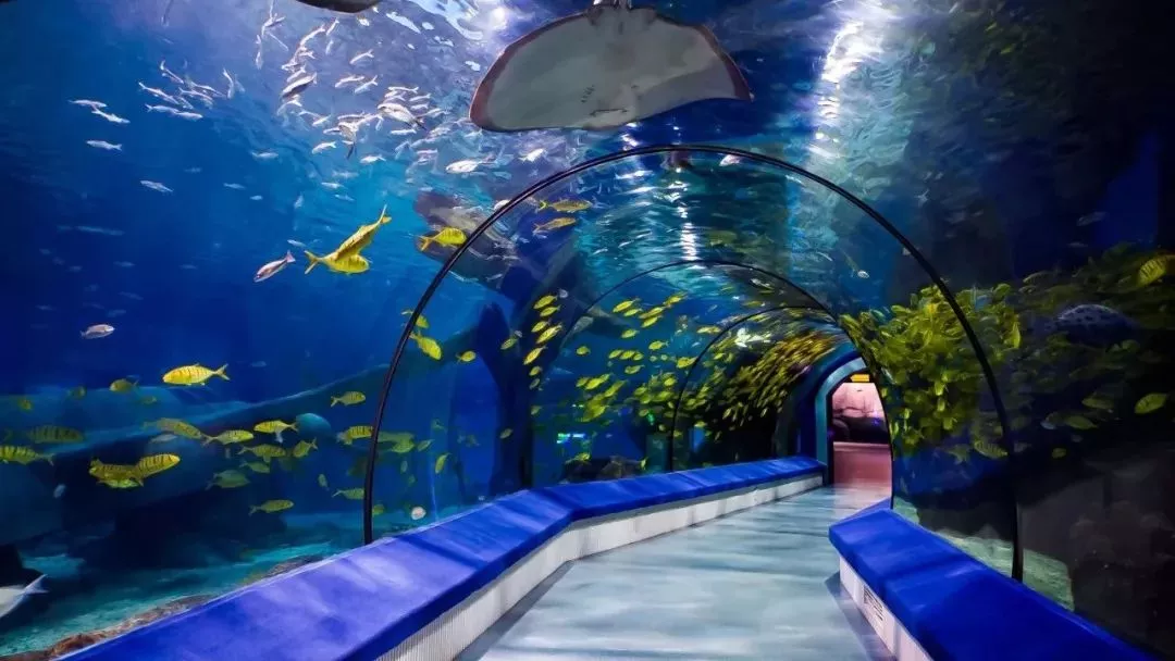 海底隧道大洋區(qū)):海底隧道——海底觀光隧道,隧道全長35米,當(dāng)游客漫步在隧道中,可以看到數(shù)種鯊魚自由的在海中游弋,各種魚類形態(tài)奇特。游客可以盡情享受海洋深處的美景,體驗(yàn)藍(lán)色海洋的夢幻。