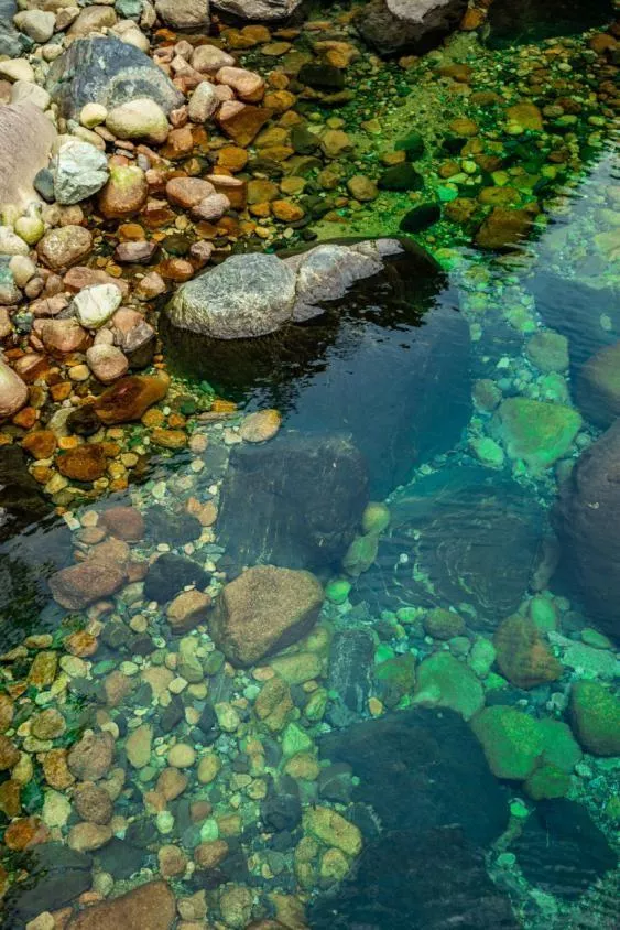 一潭清水從鐘鼓石之間潺潺流出