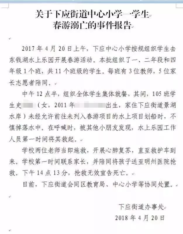 今天中午12點12分,@寧波東錢湖旅游度假區(qū)管委會 官方微博發(fā)布了情況通報: