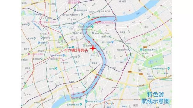 主要航線:十六鋪三號碼頭→近盧浦大橋折返→十六鋪三號碼頭