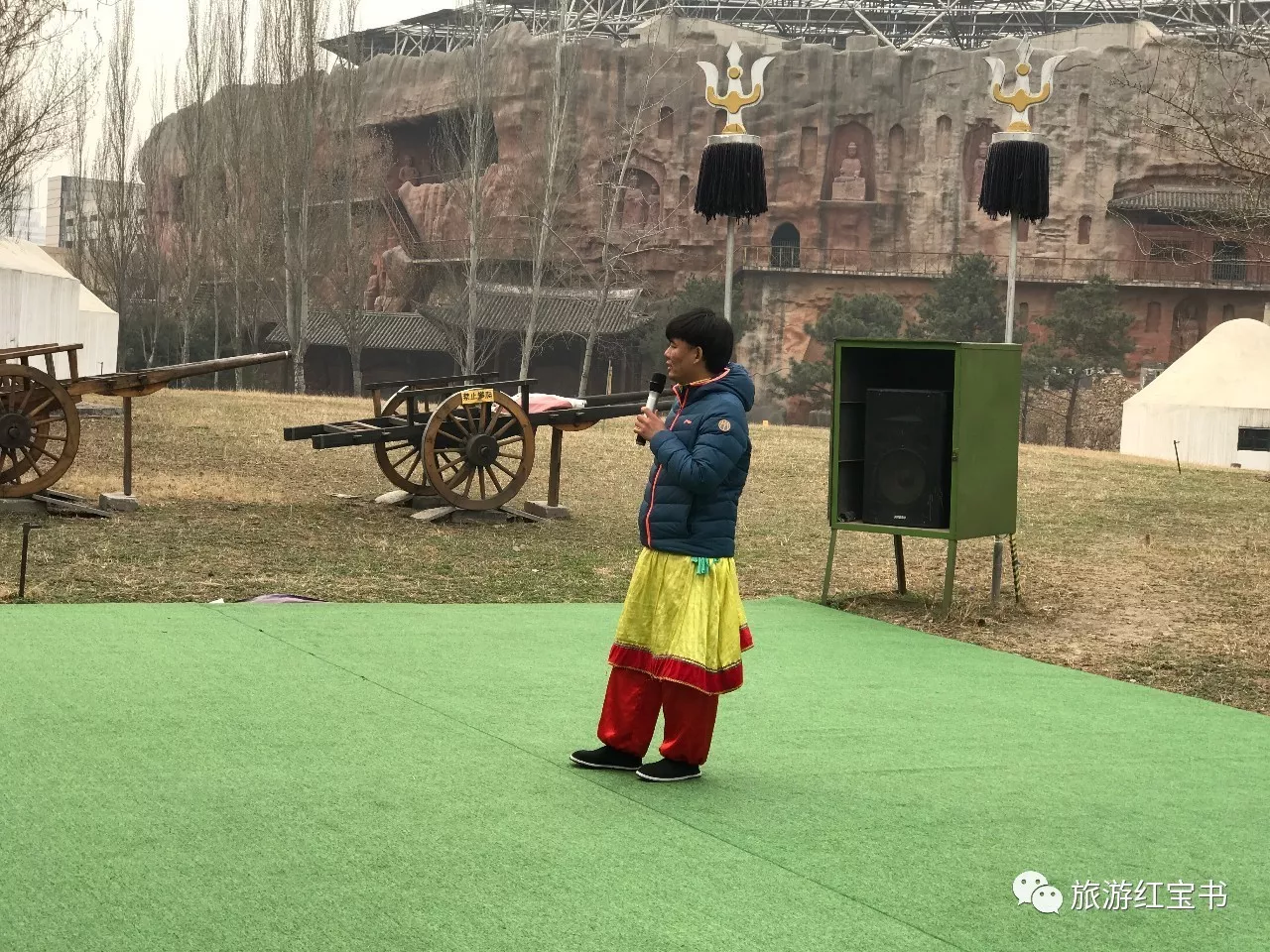 蒙古包前有蒙古小伙在唱歌,歌聲回蕩在整個園區(qū),讓荒涼的園區(qū)有了一絲絲活力。