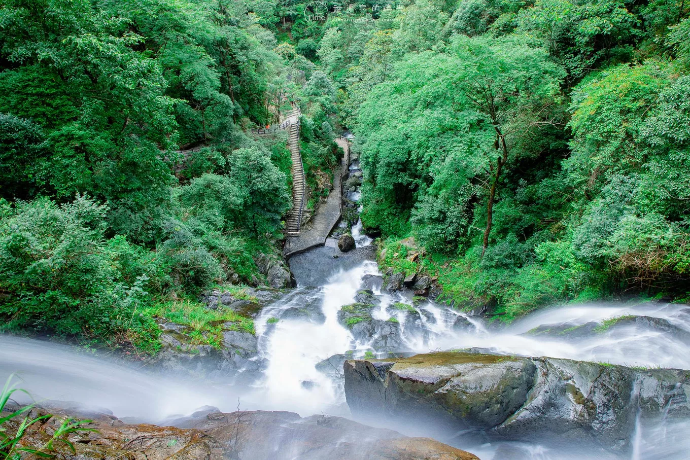 這里最徒步愛好者的圣地,林中小道兩側(cè)是茂密的樹木,密密的、雜亂的,各種樹木盤根錯(cuò)節(jié),插入深深淺淺的裂隙孔竅。沿林間小徑拾級(jí)而上,一路上都是各種豐富的珍稀物種,還能在影影綽綽之間不時(shí)瞥見遠(yuǎn)處險(xiǎn)峻無邊的瀑布群。峭壁千仞,錐鋒聳立,谷底響水奔流、亂石穿空,置身其間,感慨大自然的變幻莫測(cè),頓時(shí)讓人肅然起敬。