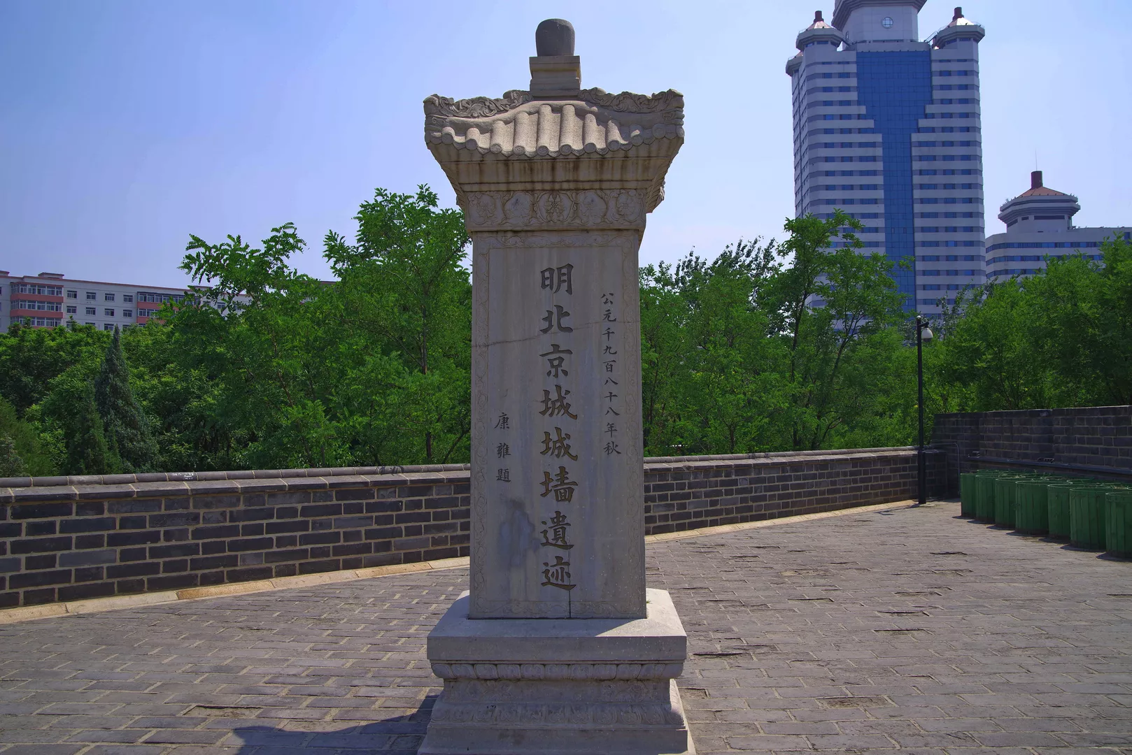 城墻旁還立了一塊漢白玉石碑,上面刻著《明北京城墻遺跡維修記》,看落款,發(fā)現(xiàn)這篇碑文“來(lái)頭”不小:“侯仁之撰文,劉炳森書(shū)丹”。若干年后,這塊碑也將成為珍貴的文物了。