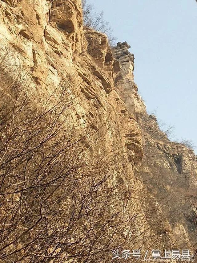 依稀記得前年秋季我和劉老師騎行真武廟,在村邊一超市服務(wù)員的指引下,向山頂攀登,來到山崖下,幾經(jīng)尋找都未見登頂?shù)穆罚毫魩仔r(shí)后,帶著遺憾下了山。昨天我們幾個(gè)好友相約,再次來到東山腳下,從盤神廟找到了上山的路,此前劉老師已從這里登上山頂,感謝當(dāng)?shù)乩相l(xiāng)的指引,也感謝常年放羊的羊倌趟出了一條上山的路,一組照片看看這山多么壯美,一起分享!