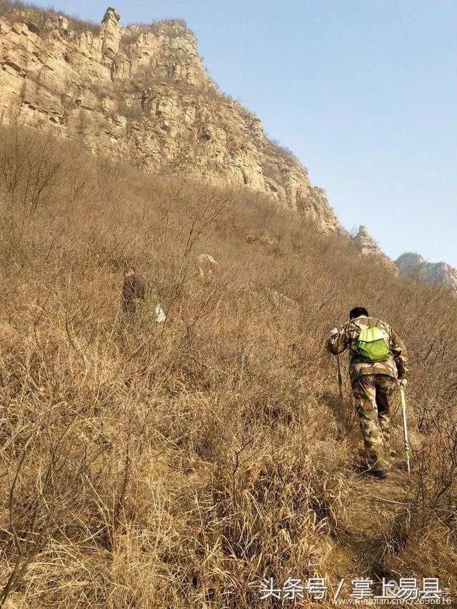 經(jīng)過一小時(shí)攀爬,來到山腳下,看著懸崖峭壁,想象中不會(huì)有路可走,近前一看,有一陡峭的山路蜿蜒曲折 通向山頂,我們第一次來就是沒有找到這條路無功而返,留下了遺憾。