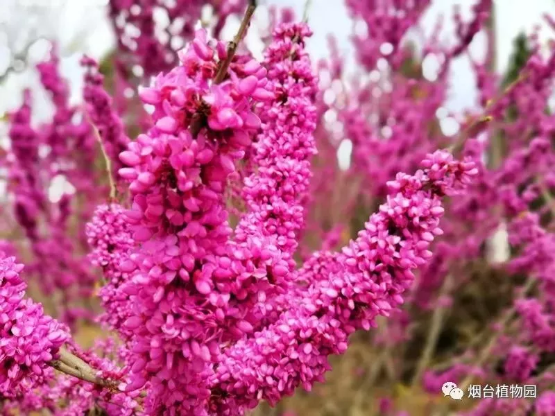 紫荊,豆科紫荊屬,花期4月,花色紫紅色,盛開(kāi)時(shí)繁英滿(mǎn)樹(shù),細(xì)碎的花朵象燃燒的小星星擠滿(mǎn)枝頭,裝點(diǎn)出一樹(shù)樹(shù)燦若云霞的景觀,那大片大片的紫色,瞬時(shí)讓人心曠神怡,心生浪漫。